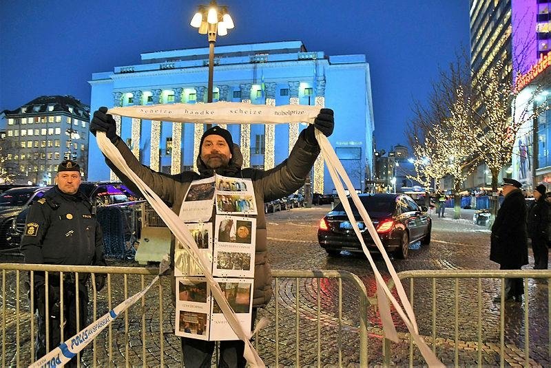 Demonstrators braved freezing temperatures on Tuesday to protest against the awarding of the 2019 Nobel Prize for Literature to Austrian writer Peter Handke because of his support for the late Serbian leader Slobodan Milosevic.