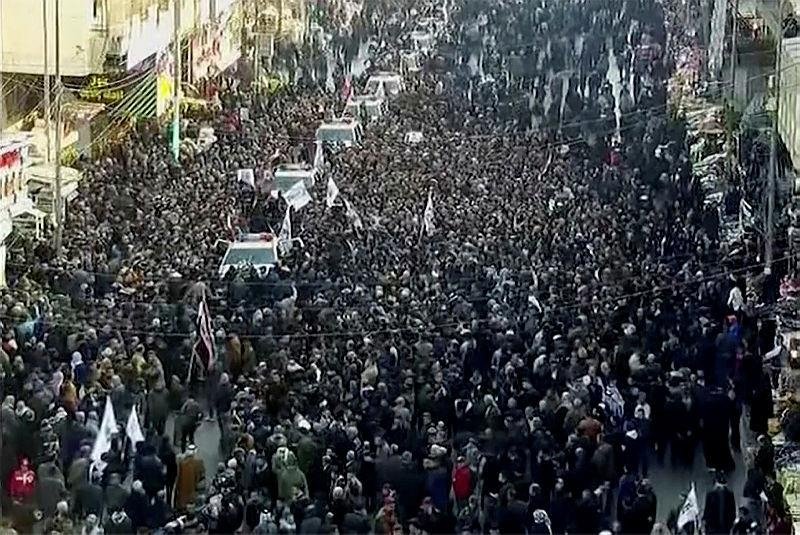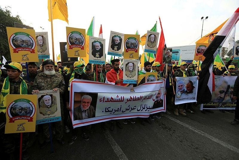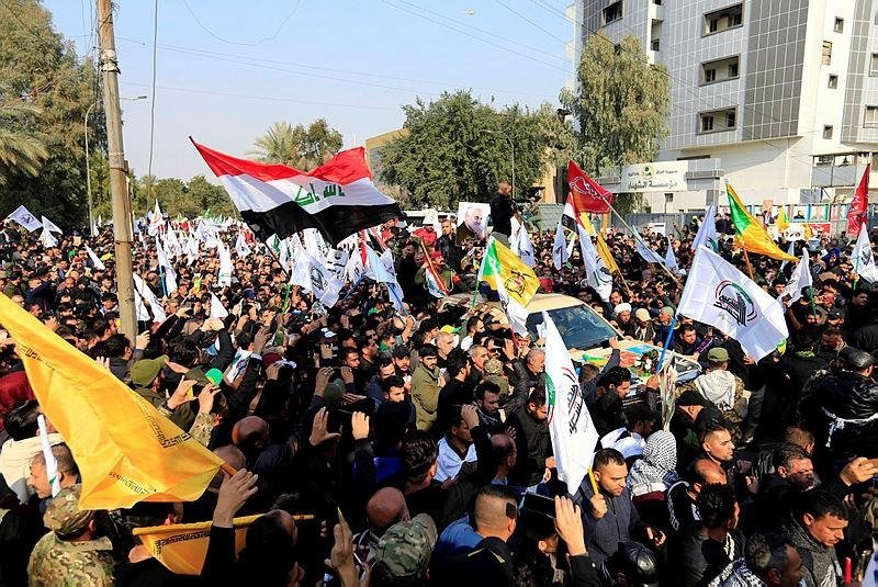The mourners, mostly men in black military fatigues, carried Iraqi flags and the flags of Iran-backed militias that are fiercely loyal to Soleimani. They were also mourning Abu Mahdi al-Muhandis, a senior Iraqi militia commander who was killed in the same strike.