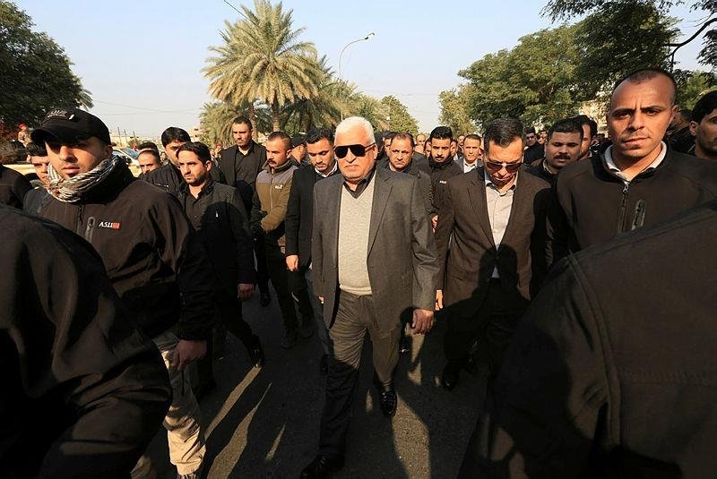 Two helicopters hovered over the procession, which was attended by Prime Minister Adel Abdul-Mahdi and leaders of Iran-backed militias.