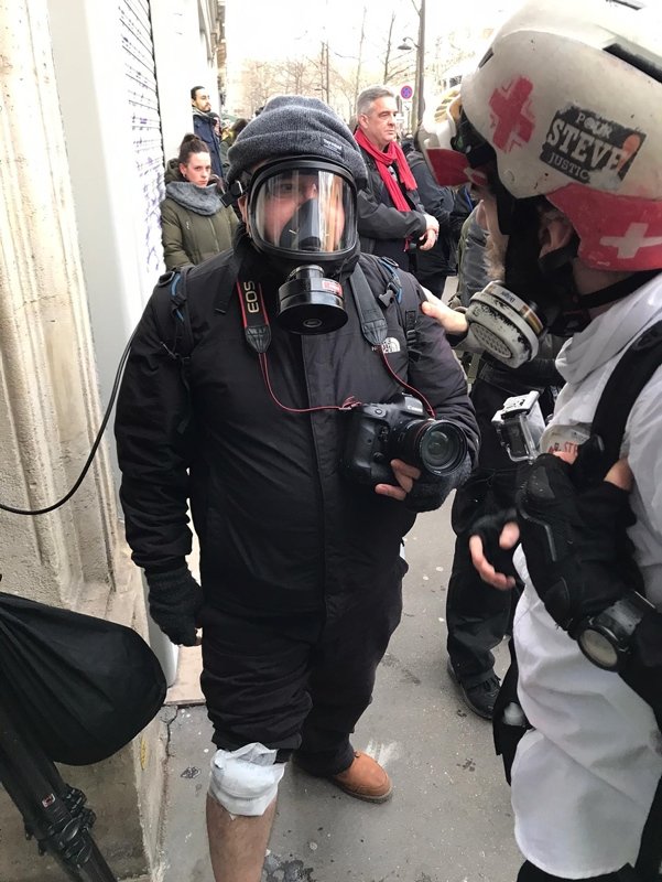 Covering the protests, Dursun Aydemir was injured in the leg when a gas canister used by the police hit him near the Lyon Train Station.