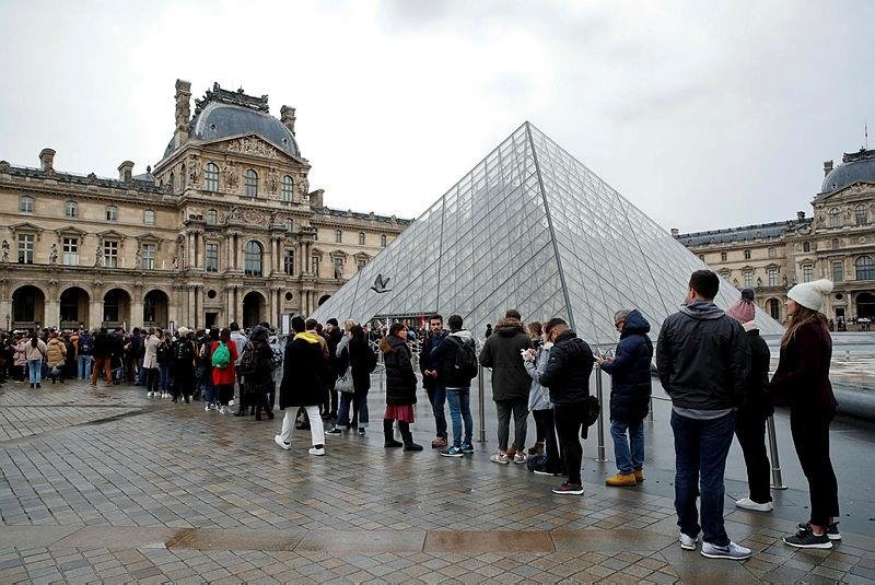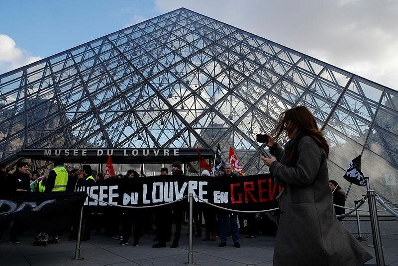 Some protesters were singing "Mona Lisa in on strike, Leonardo is on strike."