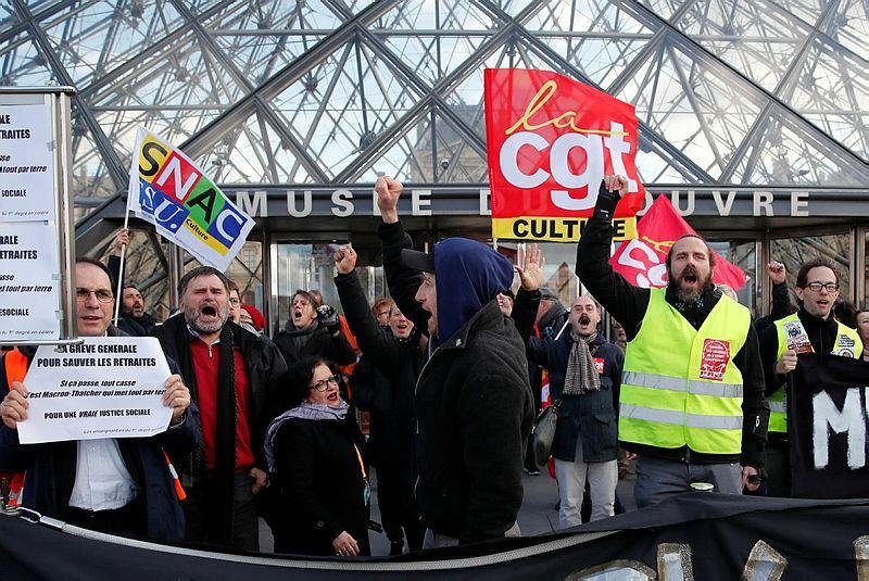 Several dozen protesters, including some Louvre employees, staged the demonstration after an appeal from several hard-left trade unions against President Emmanuel Macron's planned changes to the retirement system, which they said will "lower everyone's pensions."