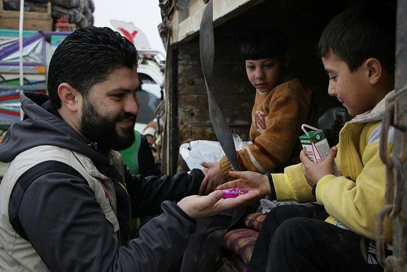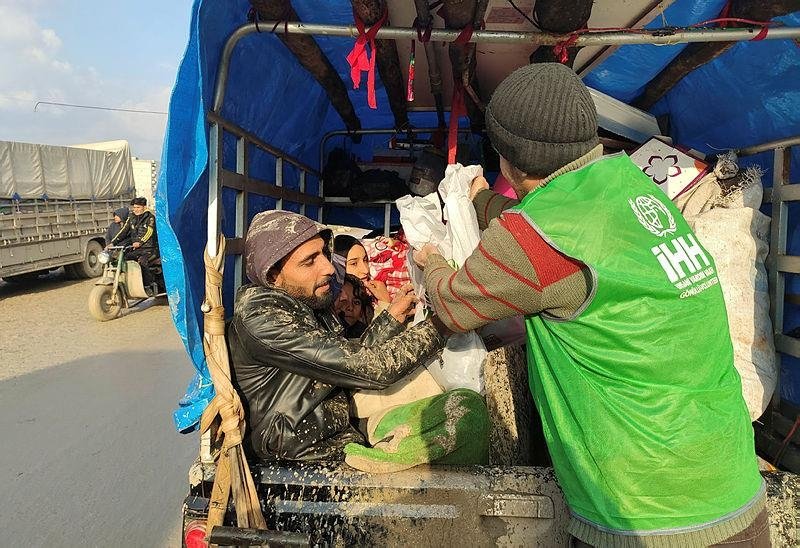A Turkish charity distributed food packages to internally displaced persons (IDPs) in northern Syria.