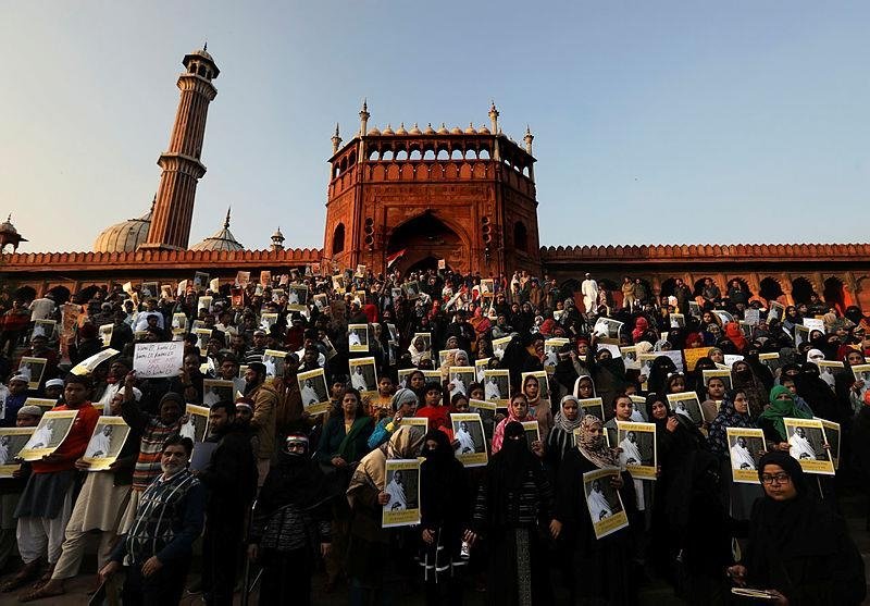 Separately, about 1,000 protesters, including a large number of women carrying Gandhi's portraits, assembled at the 17th century Jama Masjid. They sang India's national anthem after they were prevented by the police from marching to nearby Gandhi's mausoleum.