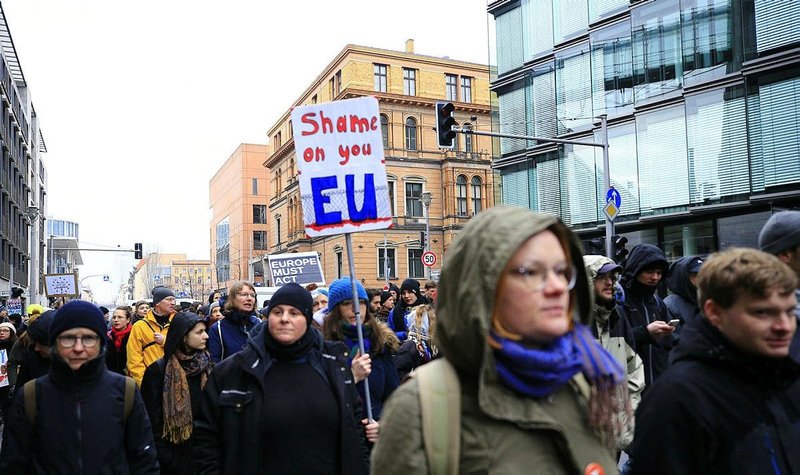 Gathering in a large rally organized by the Seebrucke (Sea Bridge) movement, protesters criticized the EU's migration policy with slogans by calling for open borders and action to help asylum seekers.
