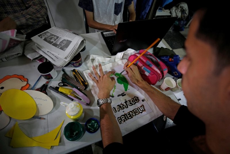 "We can make bags that are environmentally friendly, from any piece of cloth around the house - an old T-shirt, for example," said Ahmad al-Madhoun, who oversees the project, a partnership with the German Agency for International Cooperation.