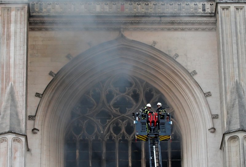 French officials launched an arson inquiry Saturday after a fire broke out in the famed Gothic Cathedral of St. Peter and St. Paul of the western French city of Nantes. The blaze destroyed the organ, shattered stained glass windows and sent black smoke spewing from between the cathedral towers.