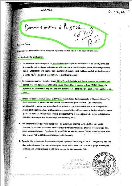 Documents obtained by Anadolu Agency showed that Lafarge told French intelligence agencies about its ties with the Daesh/ISIS terror group.