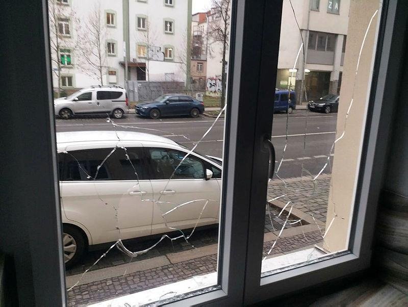 The windows were broken on Monday evening, police told news agency dpa. Before that, the group of about 80 people had marched nearby and thrown paint and stones at a police patrol car. Police estimated the total value of the damage caused during the incident at 30,000 euros (nearly $34,000).