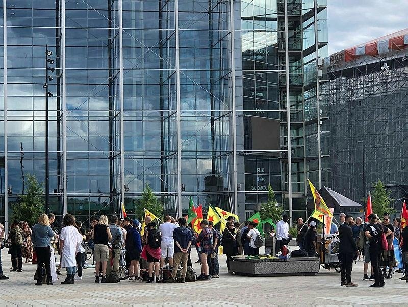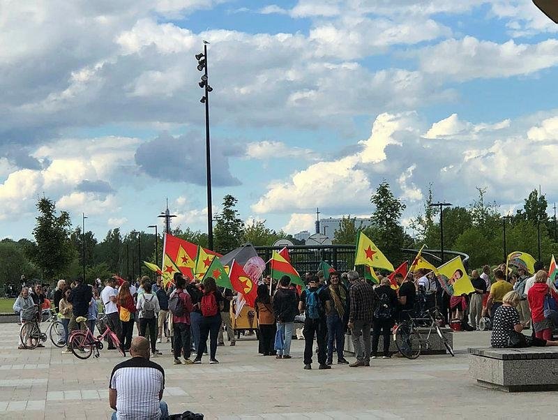 Gathering outside the Finnish parliament in Helsinki, the demonstrators unfurled banners symbolizing the terrorist group. They also chanted slogans against the policies of President Sauli Niinisto and Foreign Minister Pekka Haavisto, saying, "Finland for sale, no to NATO."