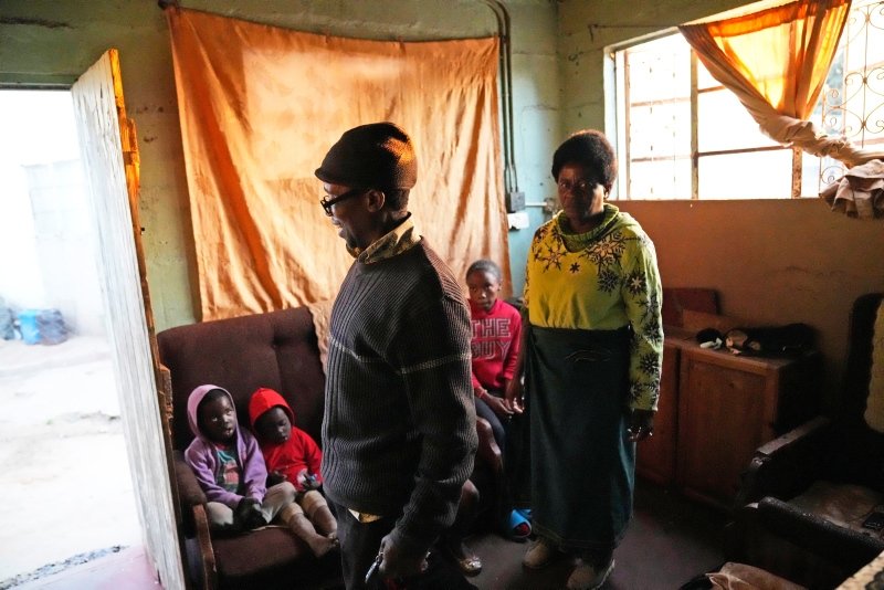 His wife, Christwish, 43, prepares the day's evening meal — the staple maize (corn) meal and vegetables plucked from a small home garden — over a wood fire. Because of Zimbabwe's lengthy power cuts, the children do their homework by a candle, although their parents press them to use it sparingly.