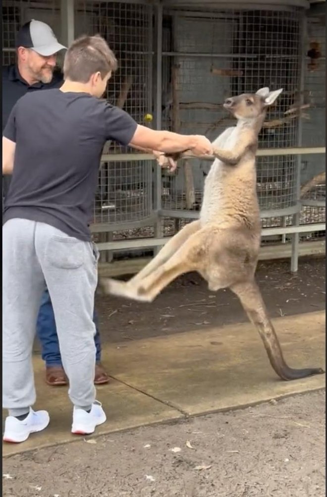 An amusing incident unfolded at a wildlife park in Perth when a spirited kangaroo engaged in a playful boxing match with an American tourist, much to the delight of onlookers.