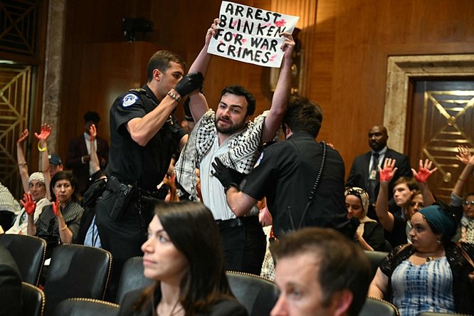 US Secretary of State Antony Blinken was interrupted by pro-Palestinian demonstrators Wednesday as he delivered testimony before a House of Representatives committee on the agency's budget request.